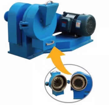 電機(jī)帶動(dòng)皮帶輪旋轉(zhuǎn),皮帶輪帶動(dòng)主軸上的動(dòng)磨盤旋轉(zhuǎn),使動(dòng)磨盤和定磨盤產(chǎn)生相對(duì)旋轉(zhuǎn)運(yùn)動(dòng),使在兩盤中間的物料粉碎,并從兩盤縫隙中落在落料箱中。出料粒度可通過調(diào)節(jié)手輪來調(diào)節(jié)兩盤的間隙達(dá)到控制粒度目的。
